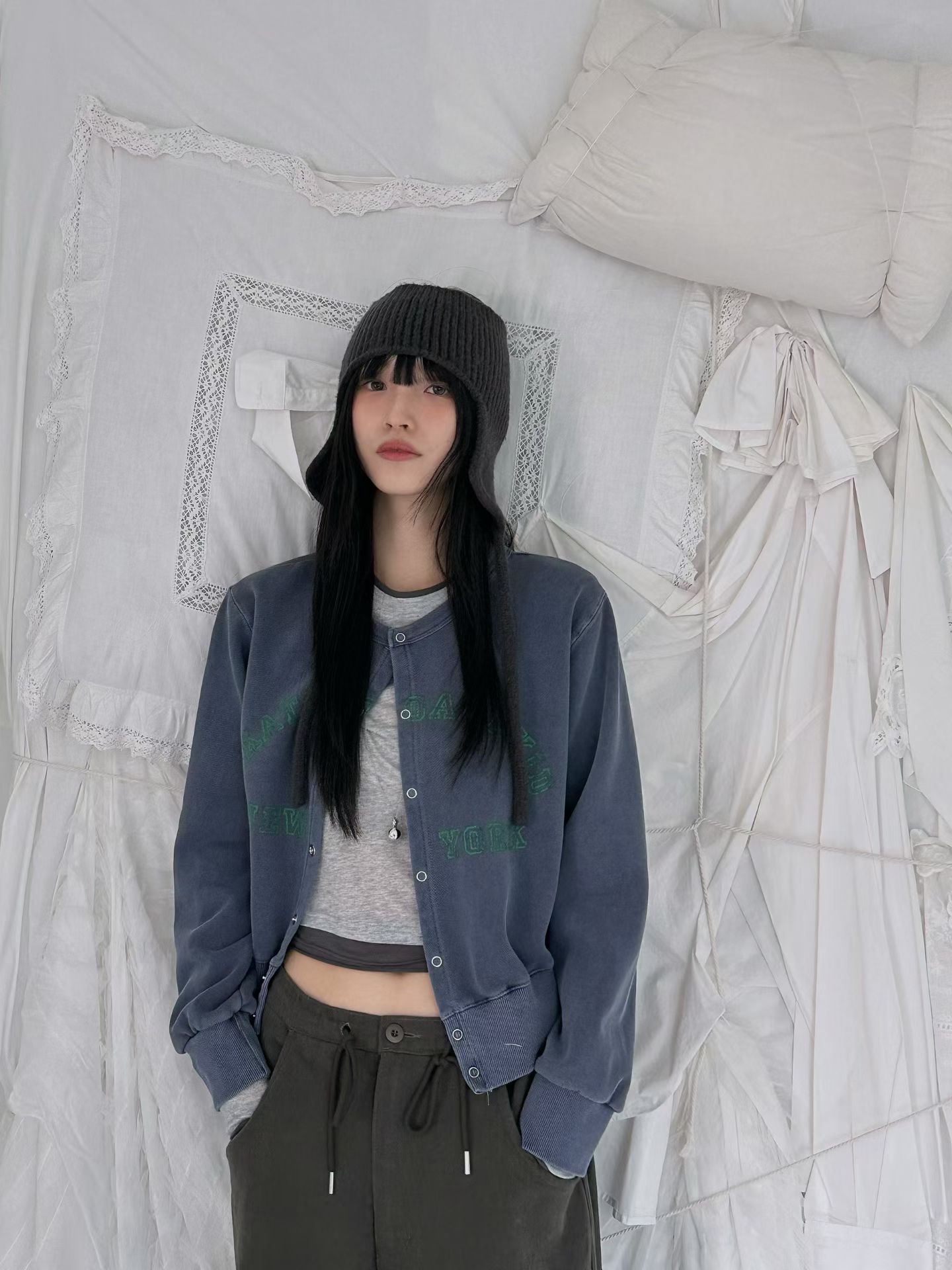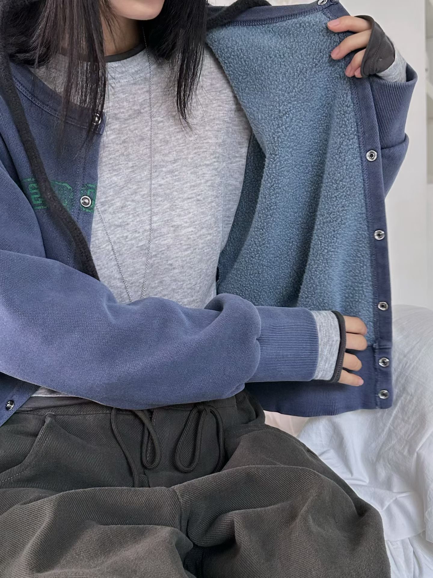Washed fleece cardigan